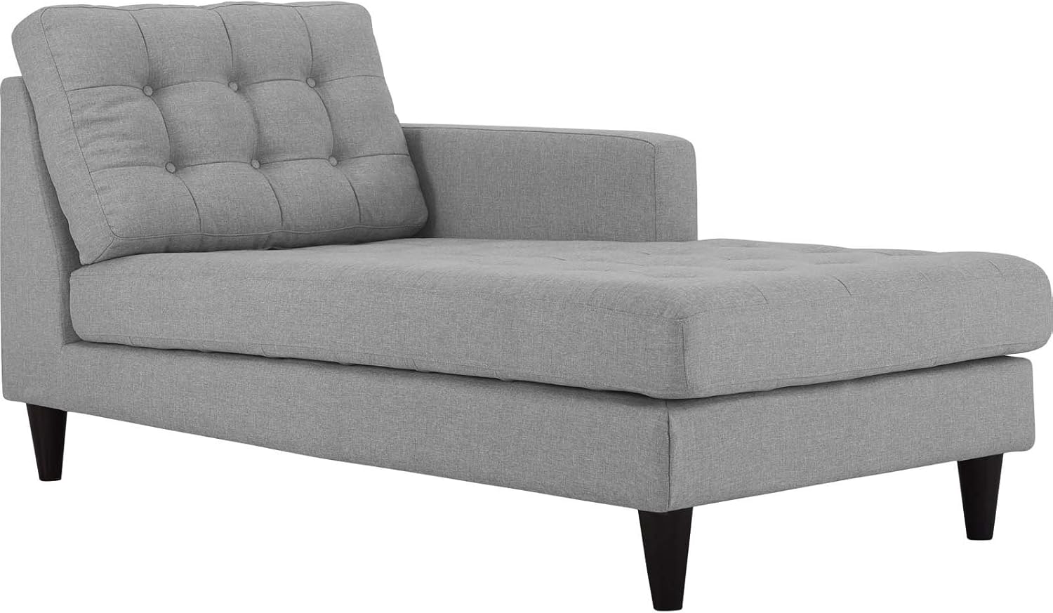 The Modway Empress Black Chaise Lounge blends mid-century design with modern comfort. It features tufted upholstery, dense foam padding, and solid wood legs for stability.